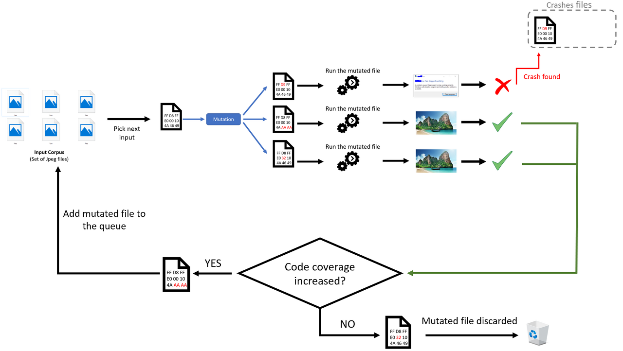 발견할 가능성을 높입니다. 일반적으로는 커버리지 도구와 결합되어 사용됩니다. 예를들어 LLVM의 "SanitizerCoverage" 도구나 AddressSanitizer 등이 있습니다.