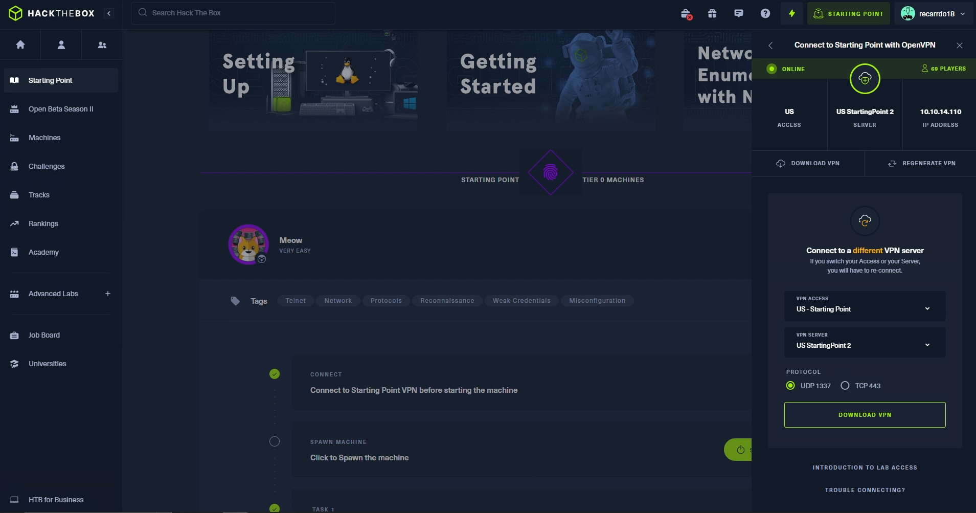 환경 세팅에는 2가지 방법이 있는데, 첫번째는 월 만원정도를 주고 HTB에서 제공하는 machine을 쓰는 방법, 두번째는 HTB에서 무료로 제공해주는 Openvpn에 본인이 구성한 가상환경을 연결하여 사용하는 방법이 있다.